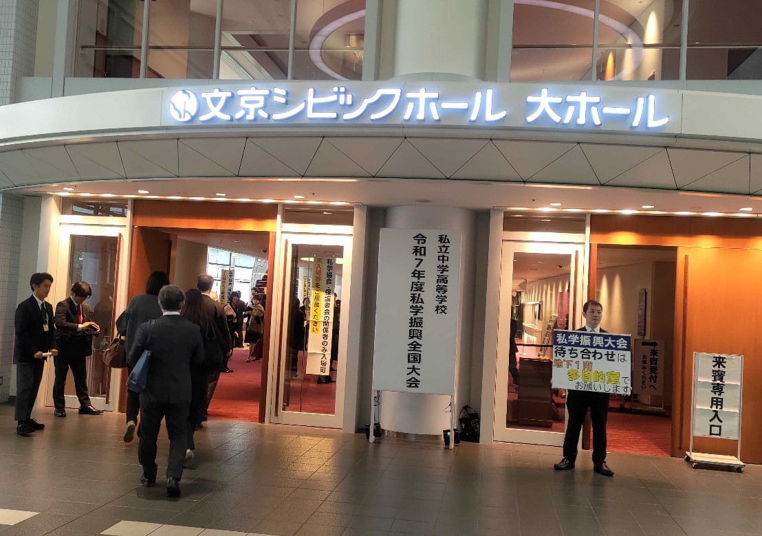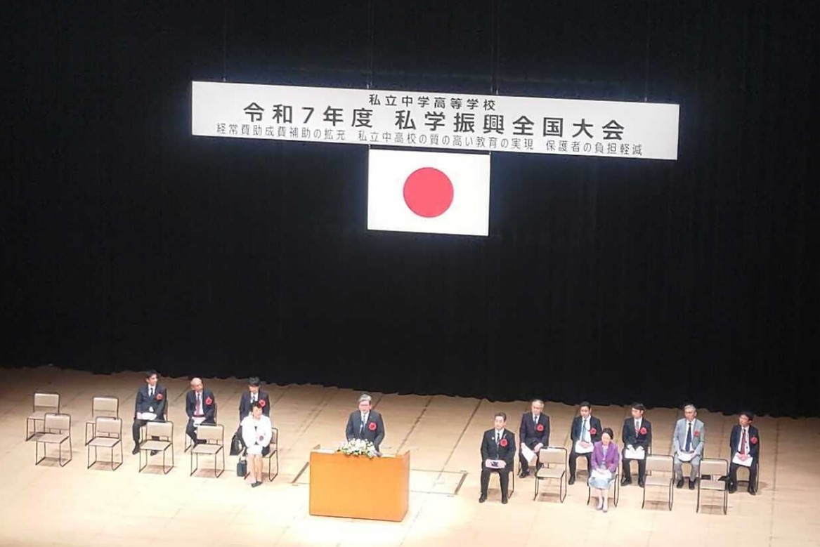 当日は、全国から私立小・中・高等学校の教員およびPTAなど多数の方々が出席し、来賓としては国会会期中にもかかわらず、多数の国会議員の皆様にご列席いただきました。本校からは今井教頭先生をはじめ、3名の保護者が参加しました。
