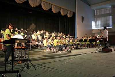 アリーナで、吹奏学部の演奏発表です。