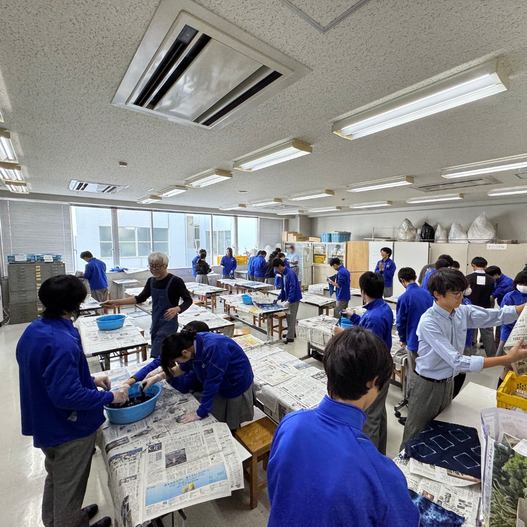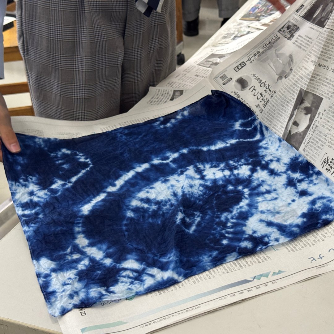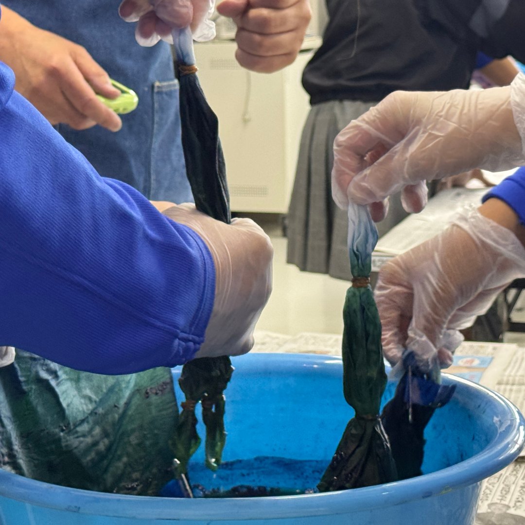 グラデーション染めに挑戦する生徒や、好きなアンモナイトの形をモチーフにする生徒など、それぞれの個性が光る作品づくりが進められました。