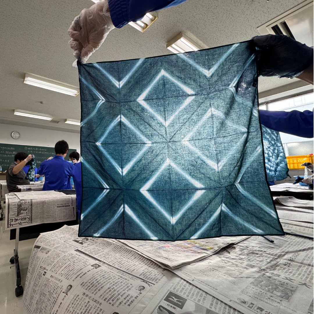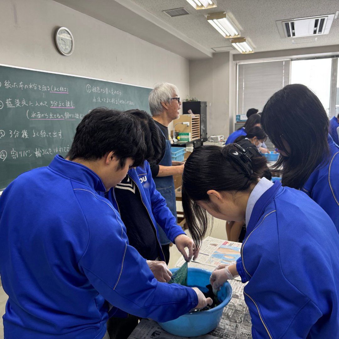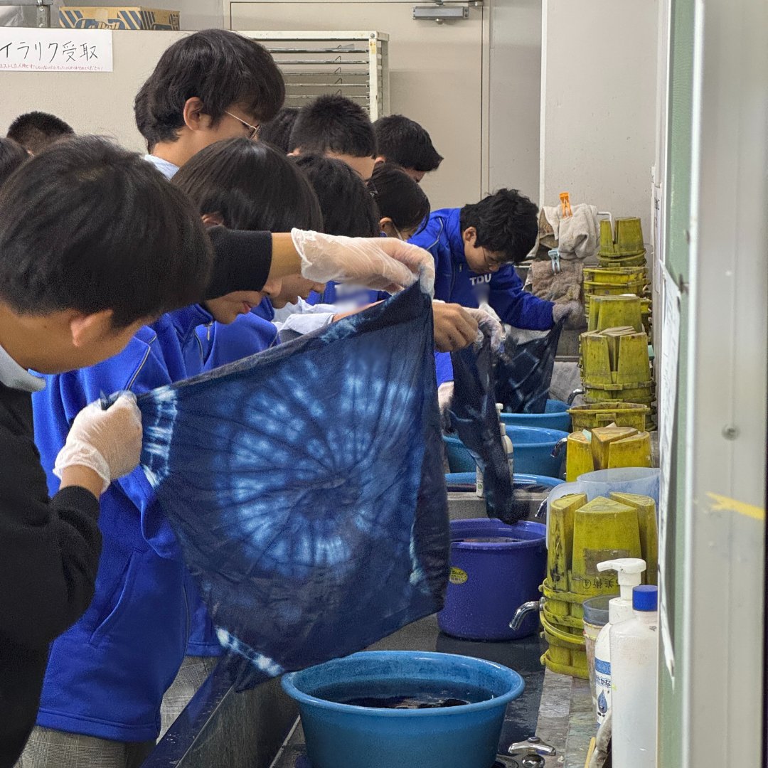 グラデーション染めに挑戦する生徒や、好きなアンモナイトの形をモチーフにする生徒など、それぞれの個性が光る作品づくりが進められました。