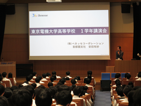 今回はベネッセから講師の先生をお招きし、これからの進路、おもに文理選択についてのお話がありました。