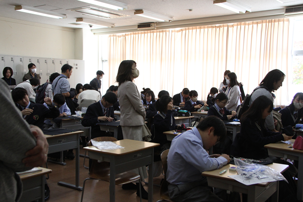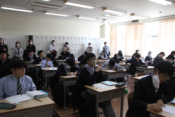 当日は教室に入りきれないほど多くの保護者の皆様にご来校いただき、生徒だけでなく授業担当者も少し緊張した様子でした。