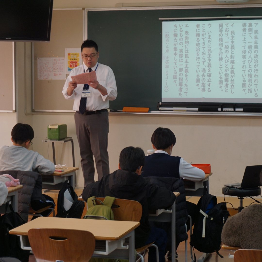 今回のプログラムでは、実際の過去問題を用いながら、本校入試の出題傾向や注意点、学習の進め方について各教科の担当教員が解説しました。