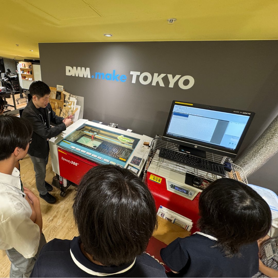 事前に生徒が希望した画像データをもとに制作するアクリルキーホルダーの加工工程も見学し、「アイデアが実際の“モノ”になっていくプロセス」を間近で体感することができました。