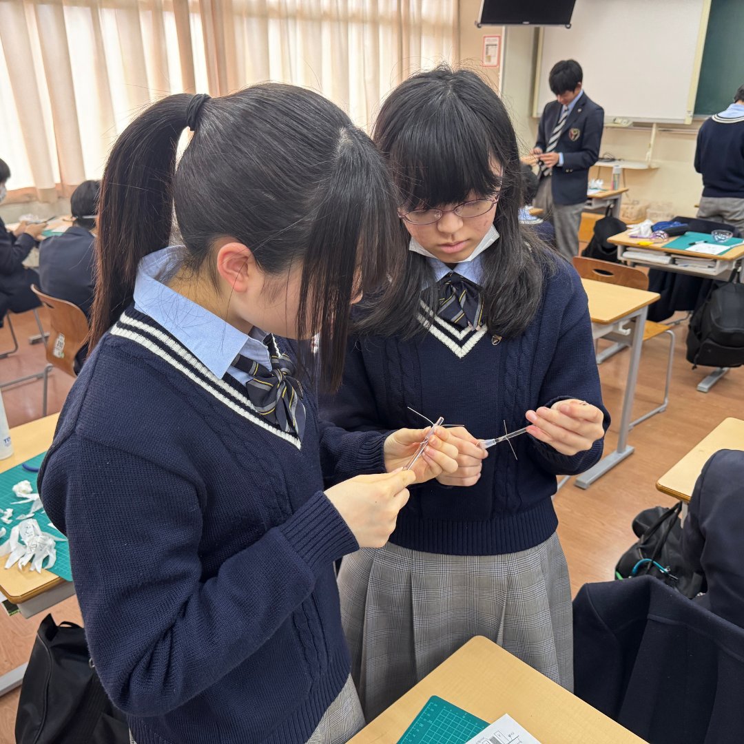 実際に道具を使ってみると力加減が難しく、「思った角度にならない」「少し曲がると戻せない」と試行錯誤する場面もありましたが、友人同士でコツを共有しながら丁寧に形を整えていきました。