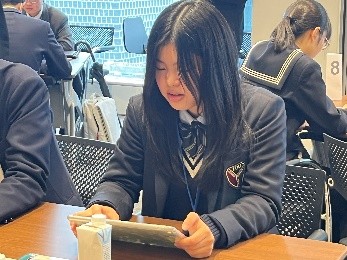 他校の生徒さんと一緒にグループワークをすることで、新しいアイディアを生み出すということが印象に残った。自分だけでなく他の人のアイディアもすり合わせしながらお金の使い方の方向性を決めていくことを学んだ。自分たちが創り出したプロダクトを社会全体で活用し、経済を回せるようになったら「いいアイディア」と言えるのかな、と感じた。
